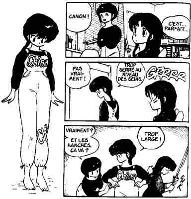 physique : dans ces deux extraits, une fille bien roulée essait les vêtements de l'héroïne.