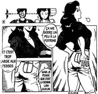 physique : dans ces deux extraits, une fille bien roulée essait les vêtements de l'héroïne.